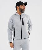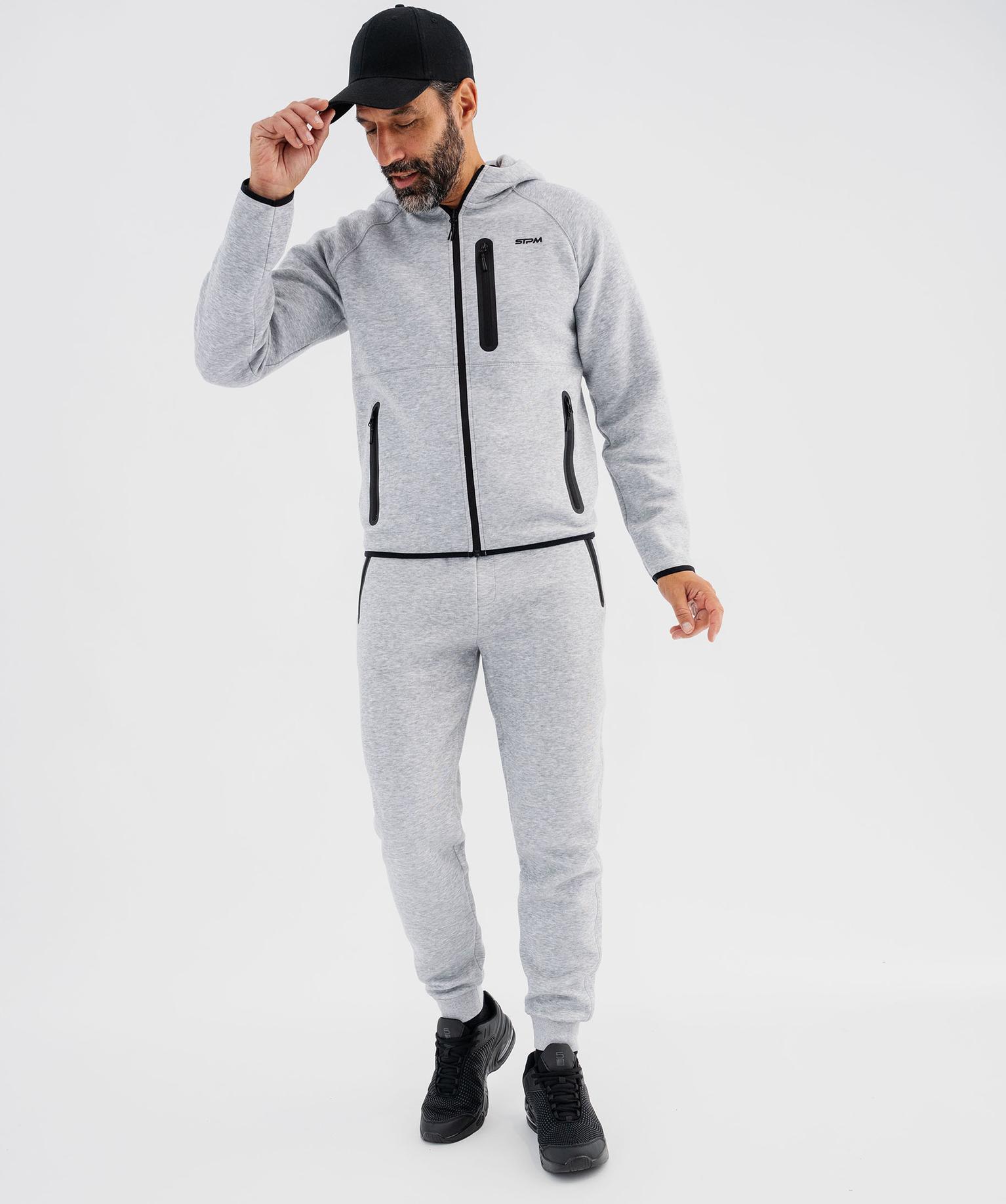Ce sweat zippé à capuche fait partie des essentiels du vestiaire sportswear masculin. Confectionné dans une maille extensible, douce et confortable, ce sweat pour homme vous accompagnera lors de tous vos entrainements en intérieur comme en extérieur. Il possède une capuche doublée jersey et trois poches zippées permettant de garder clés et téléphone en sécurité. Il se distingue par ses surpiqûres aux emmanchures, sur les manches et au milieu du buste. Il sera le meilleur allié d'un pantalon de jogging et d’une paire de baskets. Finitions biais élastiques dans le bas et aux poignets. Emmanchures raglan.
