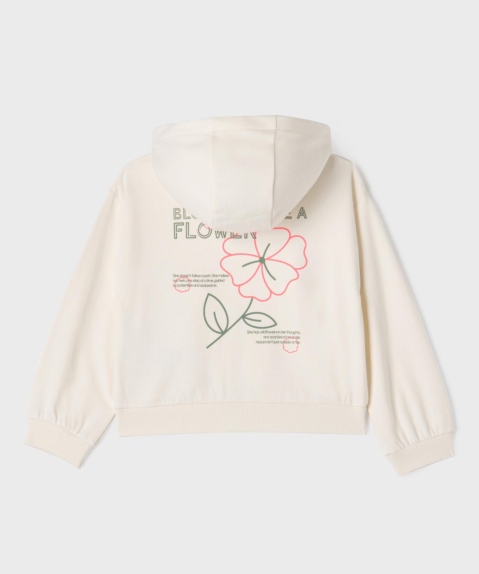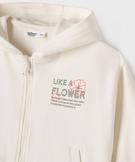 Sweat zippé à capuche imprimé devant et dos fille blanc