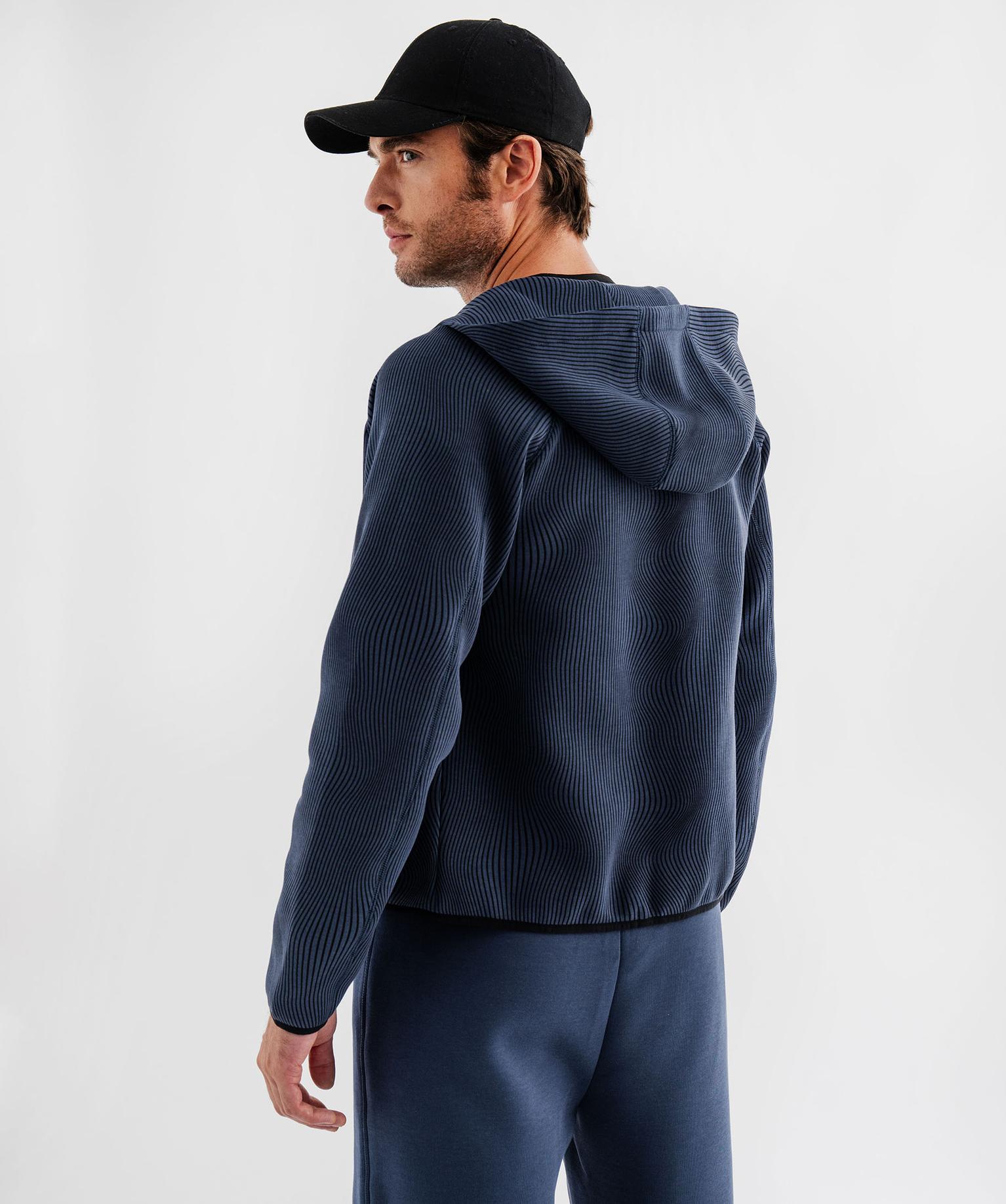 Conçu pour allier performance et style, ce sweat zippé à capuche est idéal pour vos séances de sport. Sa capuche doublée et son col montant offrent confort et protection, tandis que ses trois poches zippées permettent de garder vos essentiels en toute sécurité. Décoré de lignes fines créant un bel effet visuel, ce sweat pour homme affiche un look graphique contemporain. Parfait en complément d’un pantalon de jogging, il allie confort et style sportif au quotidien. Finitions biais contrastants aux poignets et dans le bas. Emmanchures raglan.