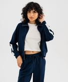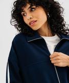 Sweat zippé à col chemise en maille sport extensible femme marine