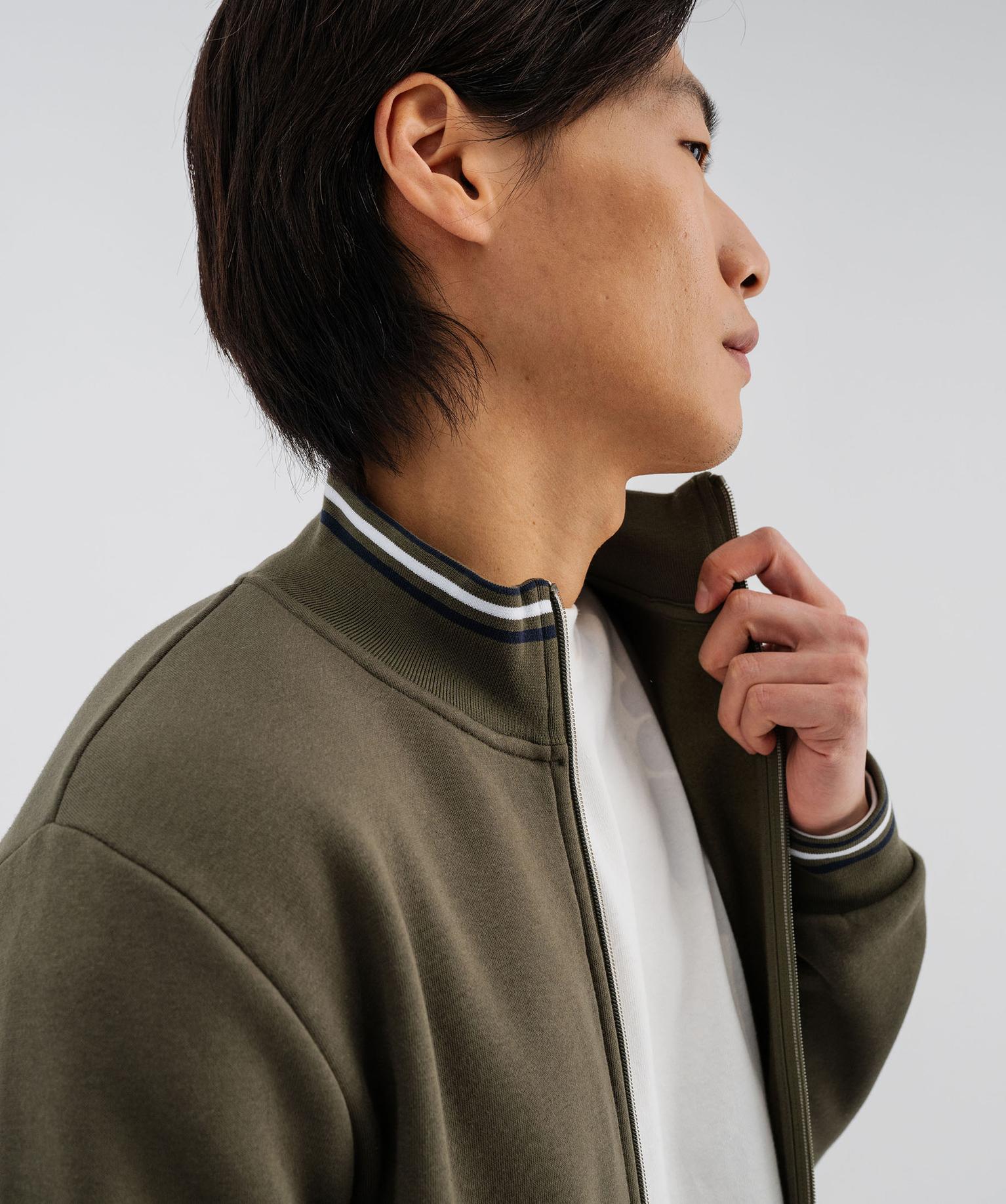 Sweat zippé avec finitions fantaisie homme kaki fonce