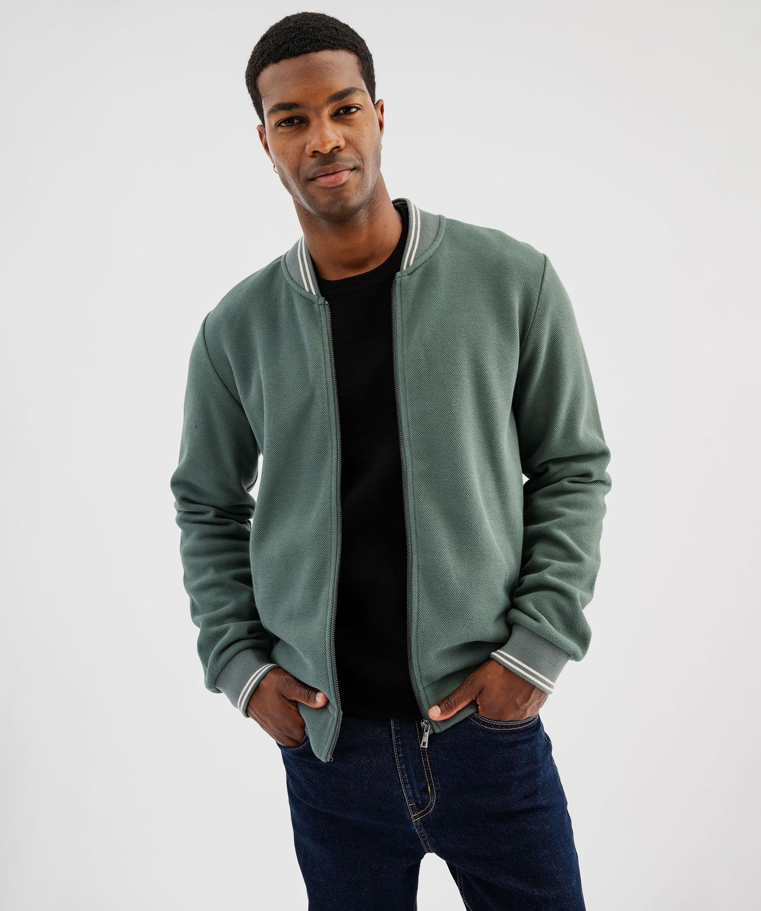 Sweat zippé en maille piquée avec finitions bicolores homme vert