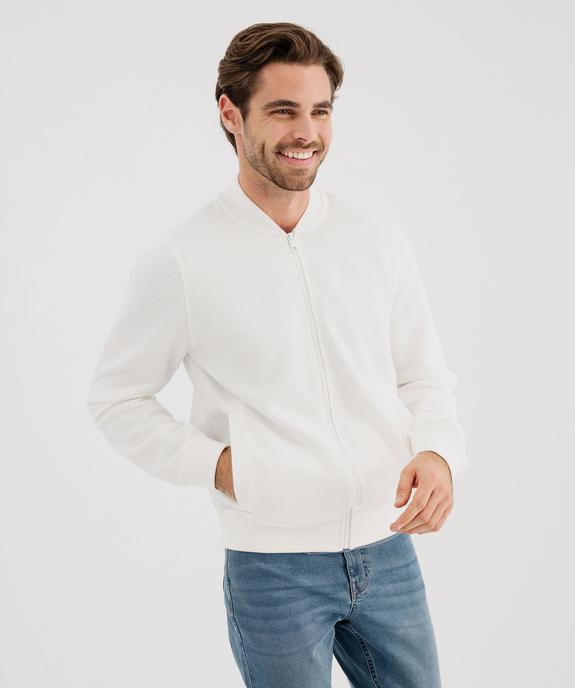 Gémo réinvente le sweat zippé avec une maille texturée effet matelassé, légère et parfaite pour les journées estivales. Ce sweat pour homme, au design élégant, se distingue par ses finitions en bord-côte ornées de liserés en relief, apportant une touche de style unique. Alliant confort et élégance, ce sweat revisite l’incontournable pièce sportswear dans une version casual chic, idéale pour un look raffiné en toute simplicité. Il se porte seul ou ouvert sur un tee-shirt. Deux poches raglan.