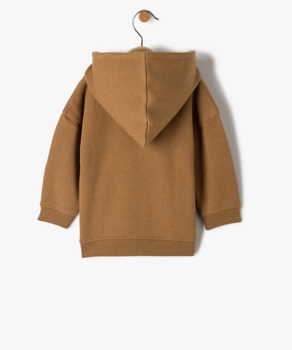 Un adorable sweat zippé au look graphique avec ses poches plaquées et ses surpiqûres sur l'avant. Ce sweat à capuche bébé garçon est finement molletonné, extra doux à l'intérieur, idéal comme pull mais aussi comme veste à l'intersaison. Une petite broderie ton sur ton à la poitrine apporte une touche de fantaisie supplémentaire. Finition bord-côte aux poignets et dans le bas. Fermeture zippée avec protection sous le menton. Capuche doublée de jersey.