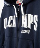 Réalisé en jersey molletonné épais et doux, le sweat zippé pour fille signé Camps United conjugue style streetwear et confort absolu. Idéal comme pull ou gilet chaud grâce à sa matière douillette, il est parfait avec sa grande capuche doublée et ses poches kangourou. Le sweat zippé Camps affiche des finitions soignées : cordons contrastants décoratifs à la capuche, étiquette Camps brodée à la capuche, grand imprimé poitrine, finition bord-côte et dos uni.