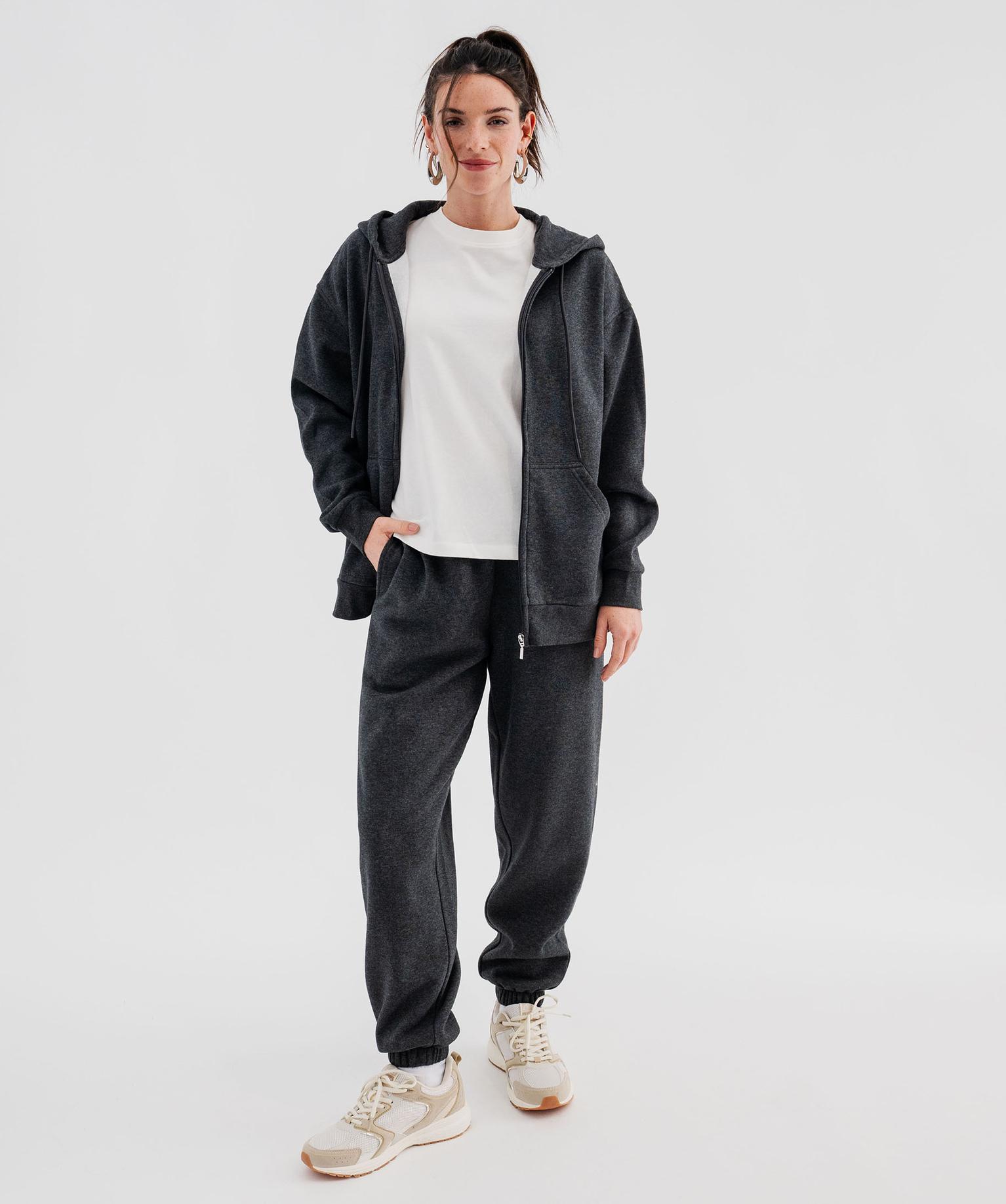 Sweat zippée à capuche en molleton femme gris