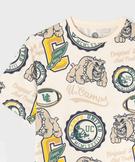 Ce t-shirt à manches courtes et col rond plonge votre garçon dans une ambiance campus américain. On aime sa coupe droite et son style unique, entièrement parcouru d'emblèmes et de mascottes d'inspiration universitaire. Sa matière principale est 100% coton, une valeur sûre pour le quotidien. Ce haut ne possède pas de poche, pour un rendu épuré.