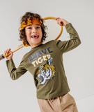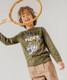 Ce t-shirts garçon est une excellente base pour composer des tenues pleines de peps. Il s'associe à merveille avec un pantalon cargo pour un look de petit explorateur ou avec un simple jean pour une allure plus classique. Quand le temps se rafraîchit, il se glisse simplement sous un pull ou un gilet, laissant entrevoir son motif ludique.