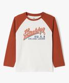 On aime ce t-shirt qui donne une allure universitaire très tendance ! C'est le haut parfait pour les garçons qui aiment bouger. Doté de manches longues de style raglan et d’un col rond classique, il est aussi stylé que confortable. Sa coupe droite lui permet une grande liberté de mouvement, que ce soit pour courir dans la cour de récré ou se détendre à la maison. La matière principale est 100% coton, promesse de douceur sur la peau. Pratique, ce t-shirt s'enfile en un clin d'œil pour les matins où chaque minute compte.