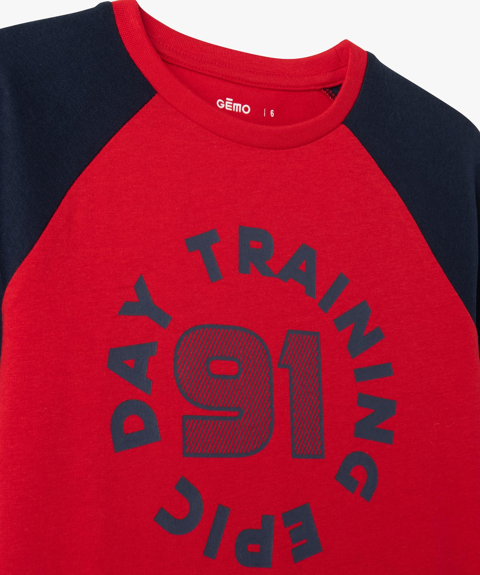 Voici un essentiel du dressing des garçons, plein de peps et facile à porter au quotidien ! Ce t-shirt garçon se distingue par ses manches courtes raglan qui apportent une note graphique et sportive à la tenue. Sa coupe droite et son col rond classique assurent une grande aisance dans tous les mouvements, que ce soit pour une journée à l'école ou pour s'amuser. Confectionné dans une matière 100% coton, ce haut est une promesse de douceur sur la peau. Pratique, il s'enfile simplement et ne possède pas de poche, pour un look épuré.