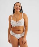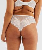 Sublimez vos formes avec ce très joli tanga en dentelle orné de finitions festonnées et d’un petit bijou métallique à la taille. Un tanga pour femme grande taille (du 46/48 au 54/56) agrémenté d’un empiècement en tulle à motif plumetis sur l’arrière. Doté de finitions sans coutures au dos, il ne marque pas les formes sous les vêtements ajustés. Un tanga à porter avec le soutien-gorge assorti.