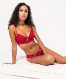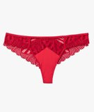 Assumez pleinement votre féminité et adoptez ce sublime tanga en maille satinée et dentelle. Un tanga femme, transparent à la taille et au dos pour dévoiler subtilement vos formes. Il est doté d’une ceinture élastique satinée et de finitions sans coutures sur l'arrière pour passer inaperçu sous la plupart des vêtements. Pour jouer la sensualité jusqu’au bout, associez ce tanga au soutien-gorge corbeille assorti.
