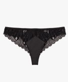 Assumez pleinement votre féminité et adoptez ce sublime tanga en maille satinée et dentelle. Un tanga femme, transparent à la taille et au dos pour dévoiler subtilement vos formes. Il est doté d’une ceinture élastique satinée et de finitions sans coutures sur l'arrière pour passer inaperçu sous la plupart des vêtements. Pour jouer la sensualité jusqu’au bout, associez ce tanga au soutien-gorge corbeille assorti.