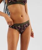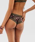 Tanga en microfibre fleurie à finition dentelle femme prune