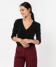 Tee-shirt à col V pailleté avec manches 3/4 femme rouge fonce