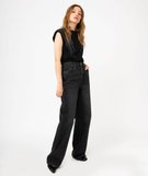 Tee-shirt à épaulettes avec studs sur l’avant femme noir
