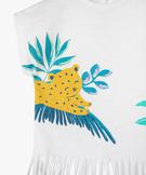 Ce tee-shirt loose apportera une belle touche bohème girly aux tenues de votre enfant. Le tee-shirt bébé fille est décoré de franges dans le bas et d'un charmant motif estival sur l'avant. Sa coupe large est accentuée par des manches très courtes, sans coutures aux emmanchures. Un tee-shirt en coton à porter avec un short en toile ou en jean tout l'été.