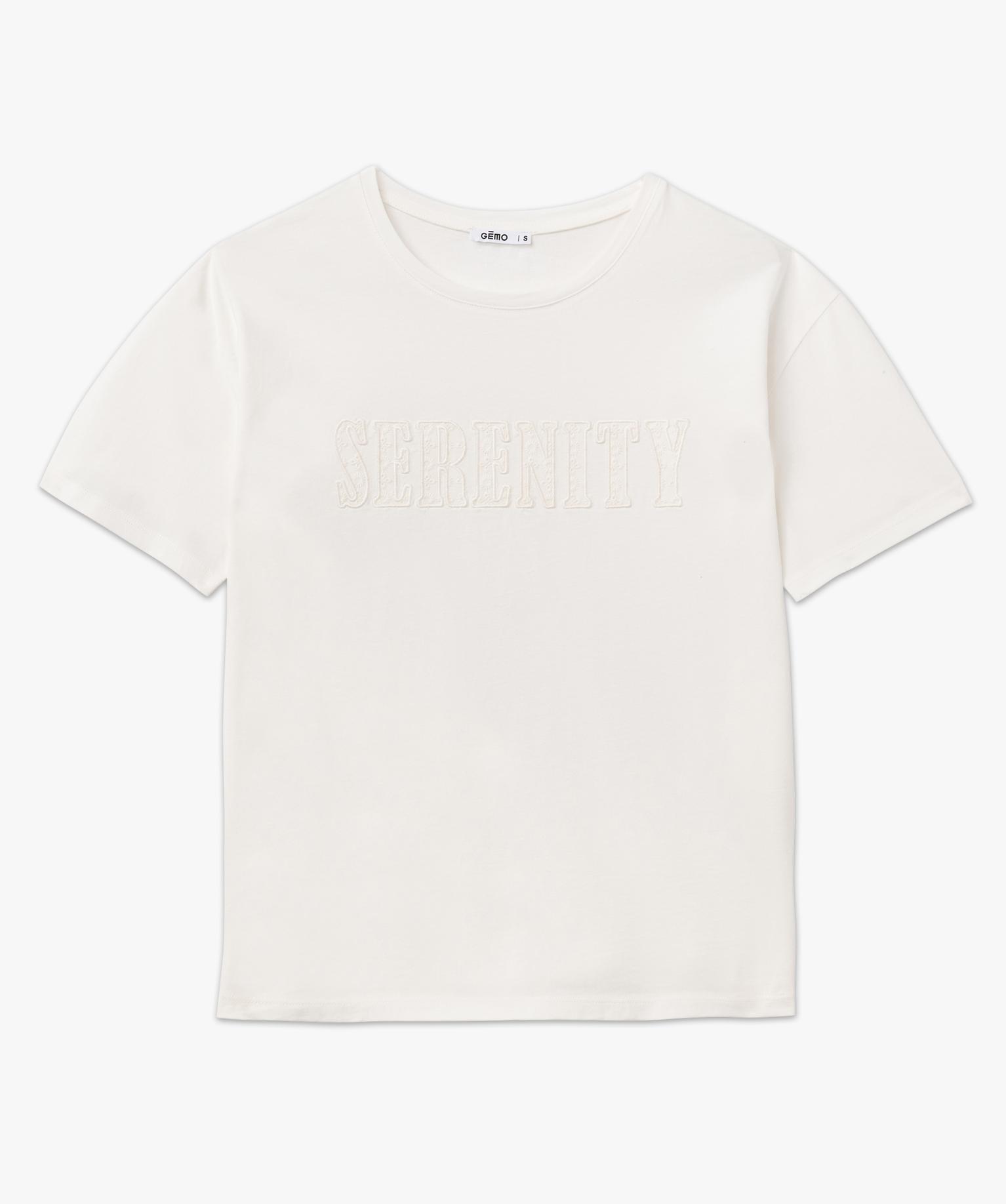 Tee-shirt à manches courte avec message brodé femme blanc chine
