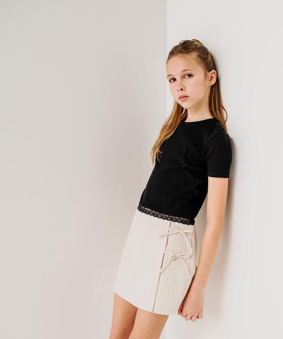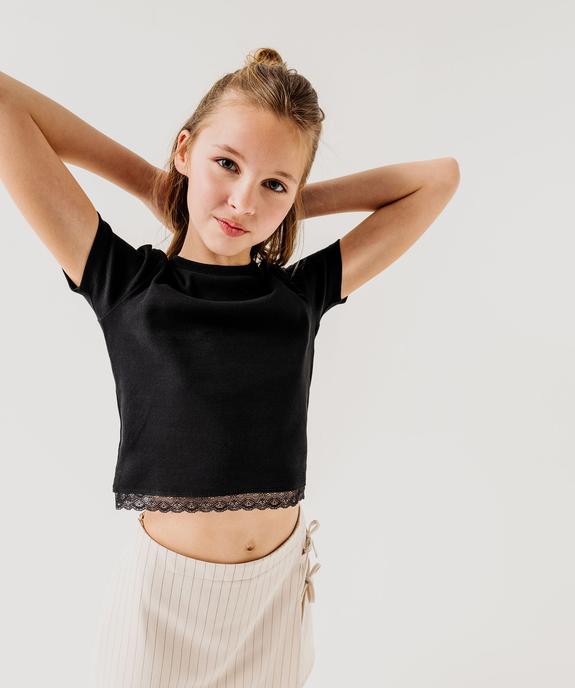 Tee-shirt à manches courtes avec bas en dentelle fille noir