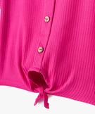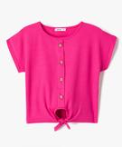 Tee-shirt à manches courtes avec boutons fantaisie et bas noué fille rose