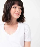 Tee-shirt à manches courtes avec col V roulotté femme blanc
