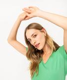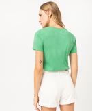 Tee-shirt à manches courtes avec col V roulotté femme vert
