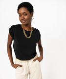 Tee-shirt à manches courtes avec épaules en dentelle femme noir