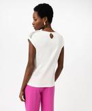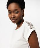 Tee-shirt à manches courtes avec épaules en dentelle femme blanc chine