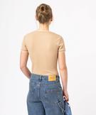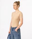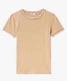 Tee-shirt à manches courtes avec finitions dentelées femme beige