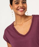 Tee-shirt à manches courtes avec finitions scintillantes femme[MISSING] violet vif