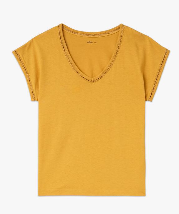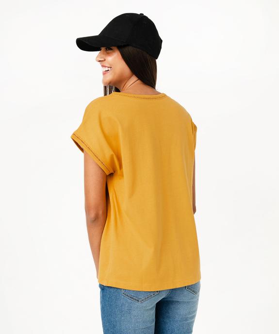 Tee-shirt à manches courtes avec finitions scintillantes femme jaune
