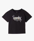 Tee-shirt à manches courtes avec inscription scintillante fille noir