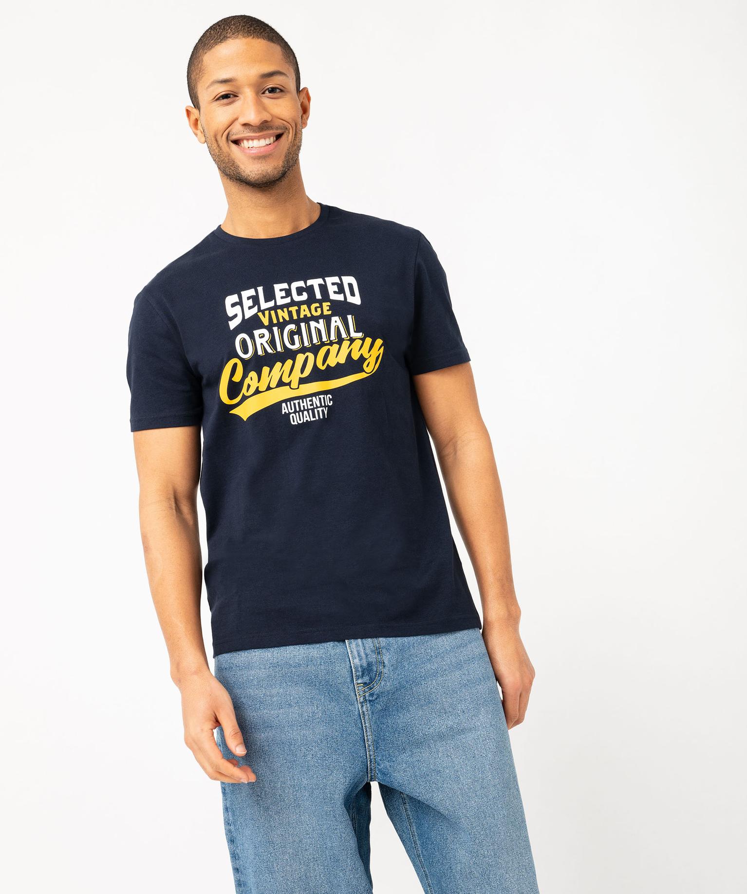 Tee-shirt à manches courtes avec inscription vintage homme bleu marine