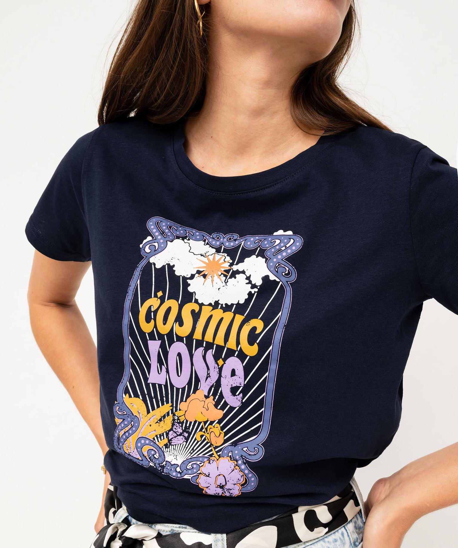 Tee-shirt à manches courtes avec motif bohème femme navy