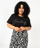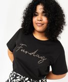 Tee-shirt à manches courtes avec motif brodé femme grande taille noir
