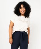 Tee-shirt à manches courtes avec motif brodé femme grande taille ecru