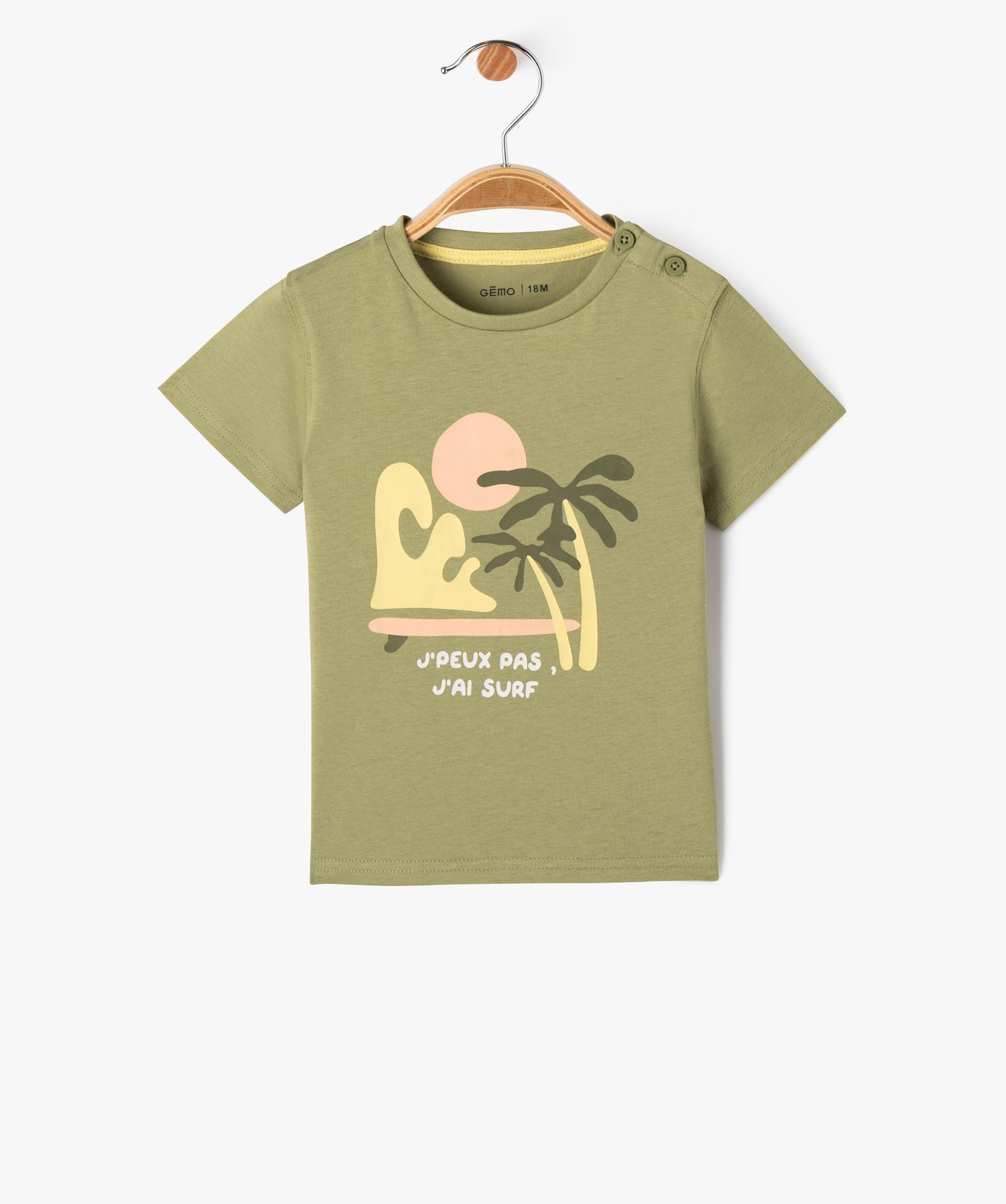 Tee-shirt à manches courtes avec motif estival bébé garçon vert