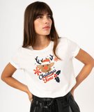 Tee-shirt à manches courtes avec motif Noël femme blanc