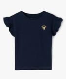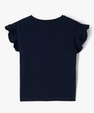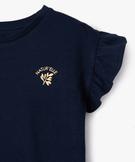 Un sublime tee-shirt à manches courtes délicatement rehaussé de finitions volantées et d’une discrète inscription pailletée sur la poitrine. Un tee-shirt fille à la fois élégant et confortable car doté d’une coupe ample. Un essentiel du vestiaire estival à mixer avec une jupe et une paire de sandales.