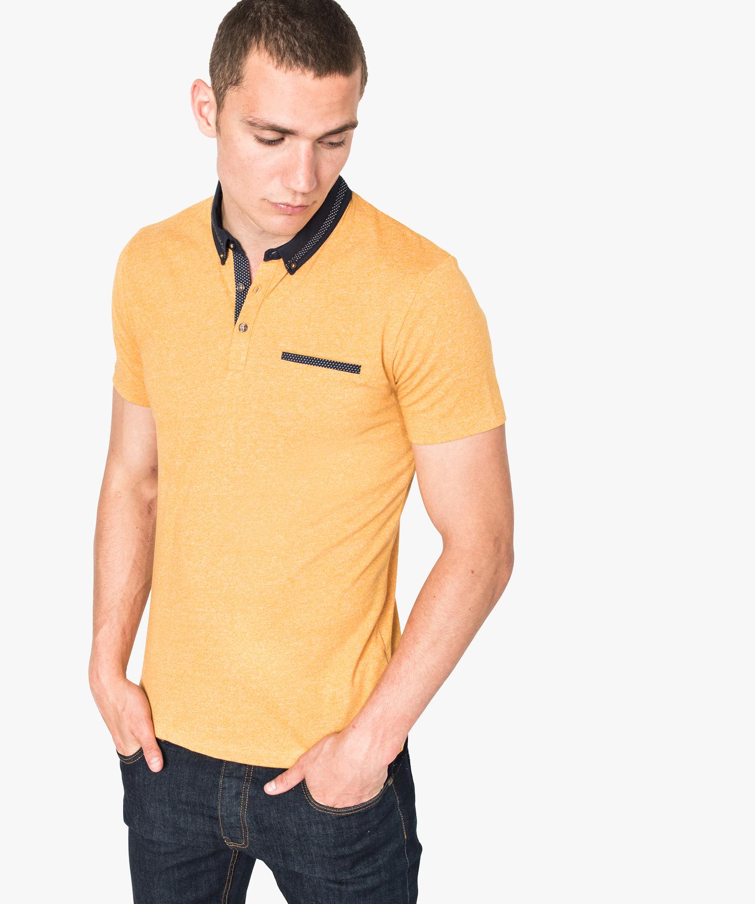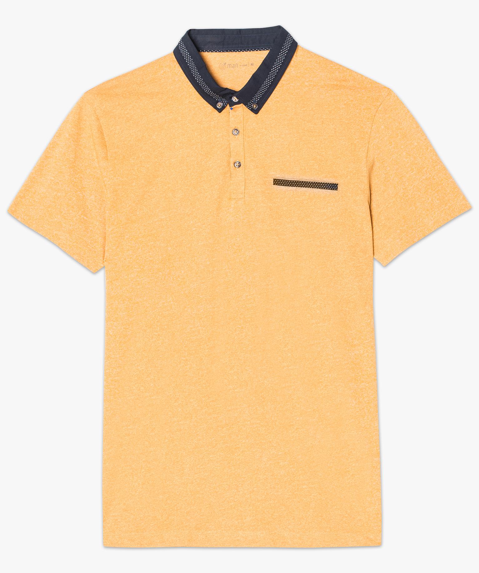 Tee-shirt à manches courtes col polo à liserés fantaisie jaune