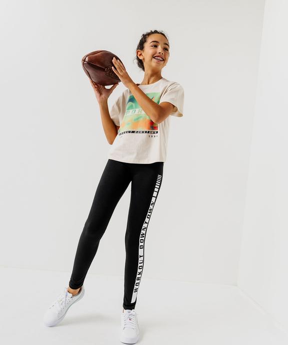 Ce tee-shirt fille mixe des inspirations sportswear et citadines pour permettre aux filles de créer des looks tendance et décontractés. Un tee-shirt à manches courtes à la coupe ample et courte, décoré d’inscriptions sur le thème du sport. Il possède un col rond bien dégagé mettant le port de tête en valeur. Un tee-shirt imprimé à porter avec un jean wide leg et des baskets.