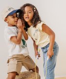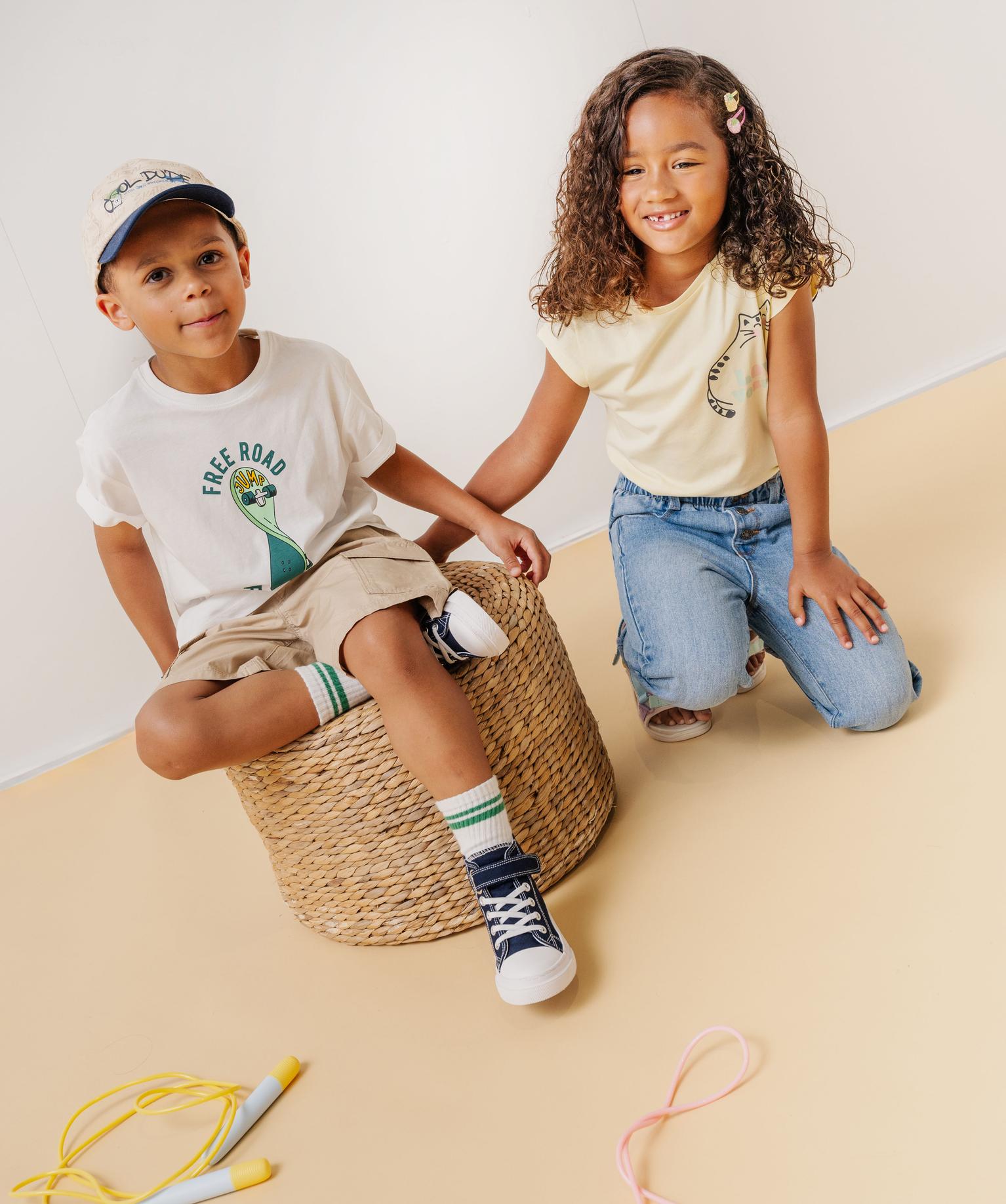 Ce tee-shirt pour fille a décidément tout pour plaire, coupe ample ultra tendance et motif girly ! Ce tee-shirt à manches ultra-courtes sans coutures aux emmanchures affiche une allure loose qui sera mise en valeur par un pantalon slim. Un top girly à collectionner dans tous les coloris pour créer de jolies tenues pétillantes pour les jeunes fashionistas. Col rond en bord-côte.