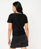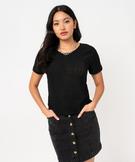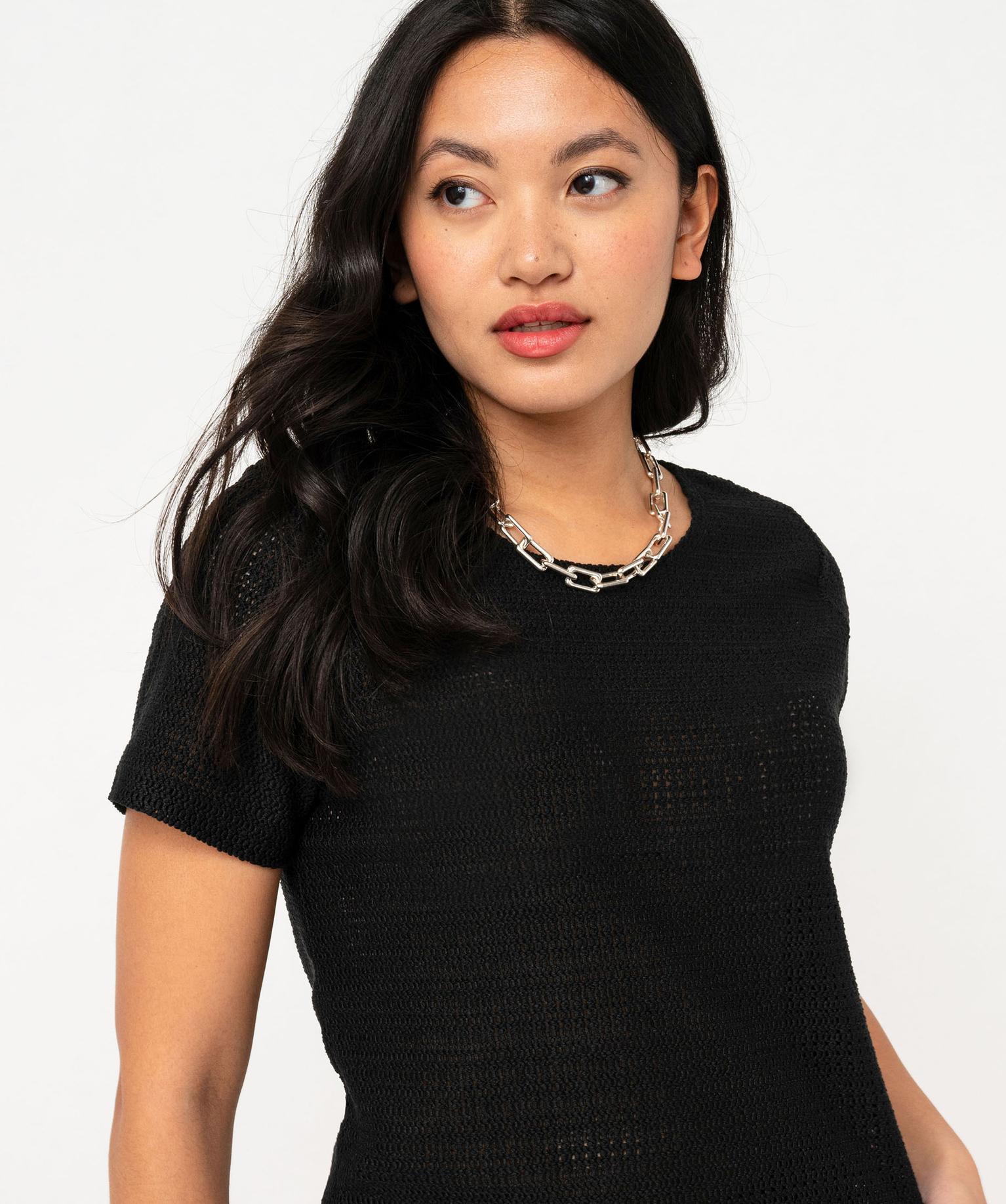 Tee-shirt à manches courtes en maille ajourée esprit crochet femme noir
