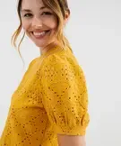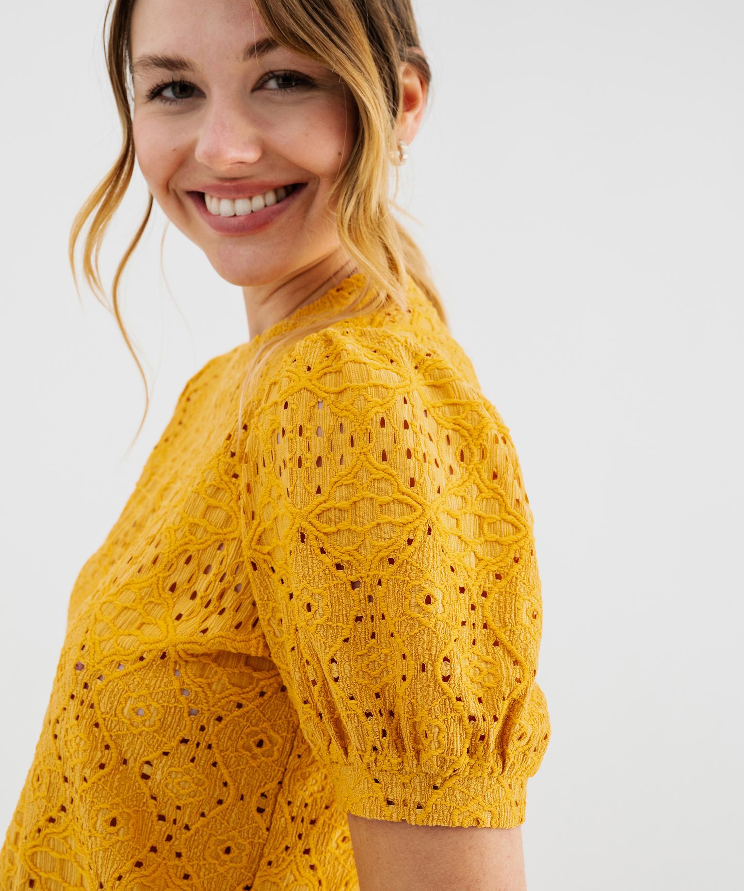Tee-shirt à manches courtes en maille ajourée femme jaune fonce