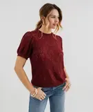 Tee-shirt à manches courtes en maille ajourée femme marron