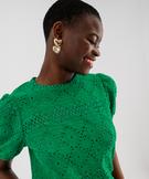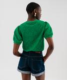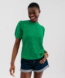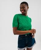 Tee-shirt à manches courtes en maille ajourée femme vert