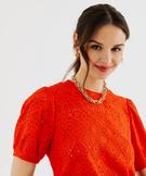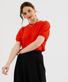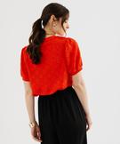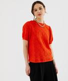 Tee-shirt à manches courtes en maille ajourée femme rouge
