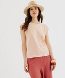 Tee-shirt à manches courtes et col rond femme rose poudre