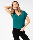 Tee-shirt à manches courtes et col V en dentelle coupe loose femme[MISSING] bleu canard