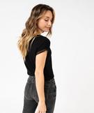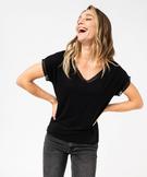 Tee-shirt à manches courtes et col V en dentelle coupe loose femme[MISSING] noir